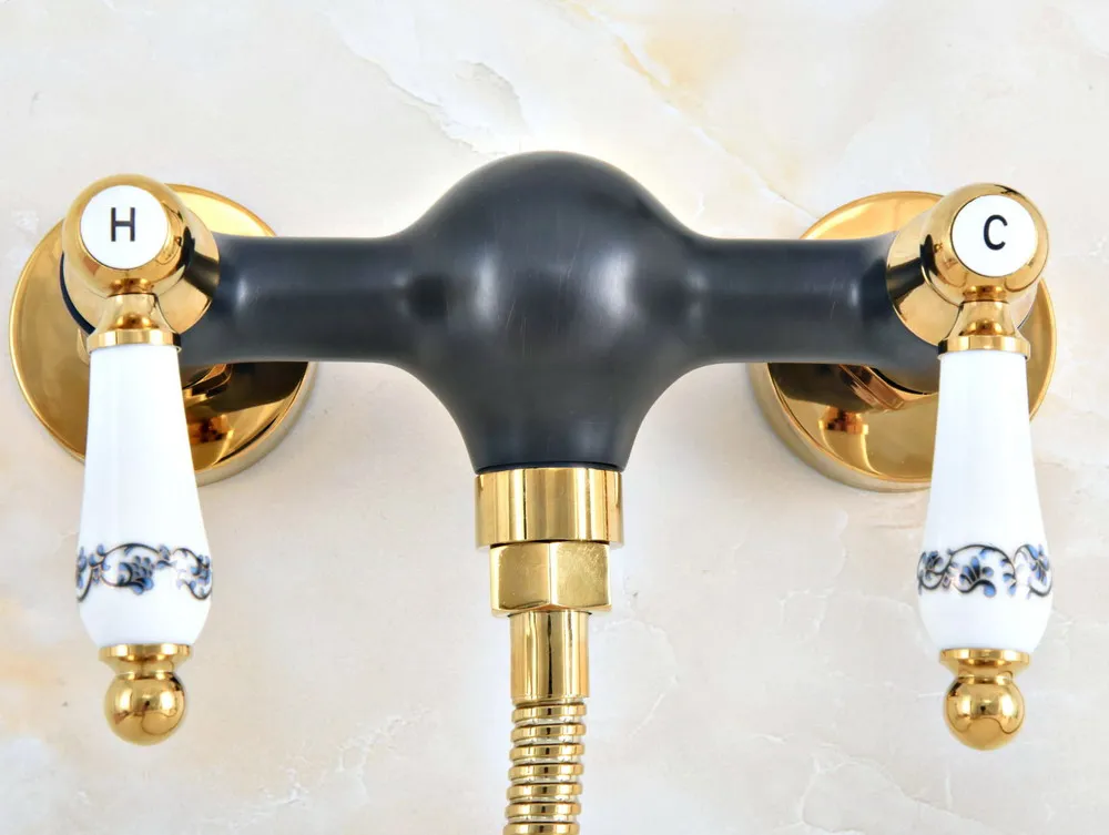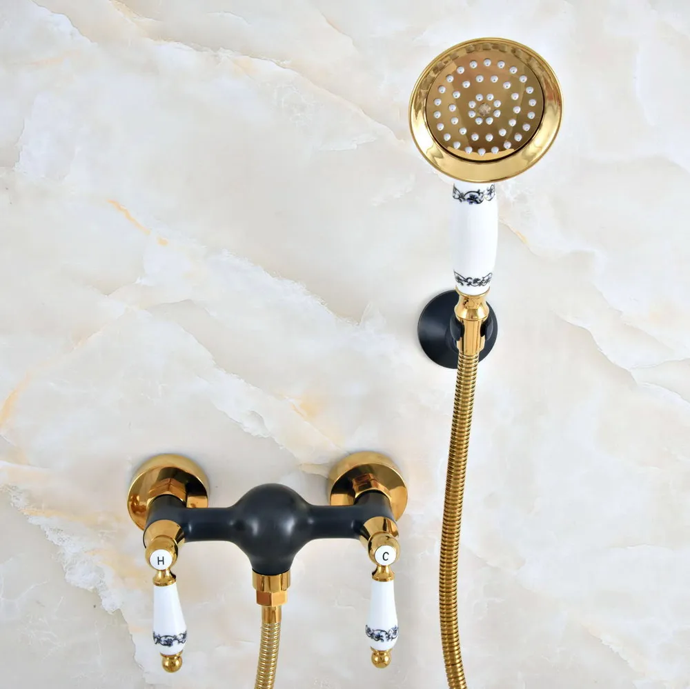 Luxury Gold Color Brass Black Oil Rubbed Bronze Wall Mounted Bathroom Hand Held Shower Head Faucet