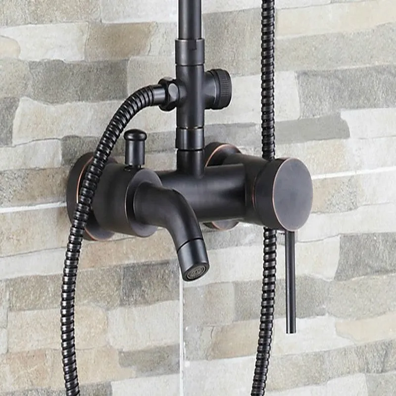 Black Oil Rubbed Brass Single Handle Bathroom Rainfall Rain Shower Head Faucet Set Mixer Tap Wall M