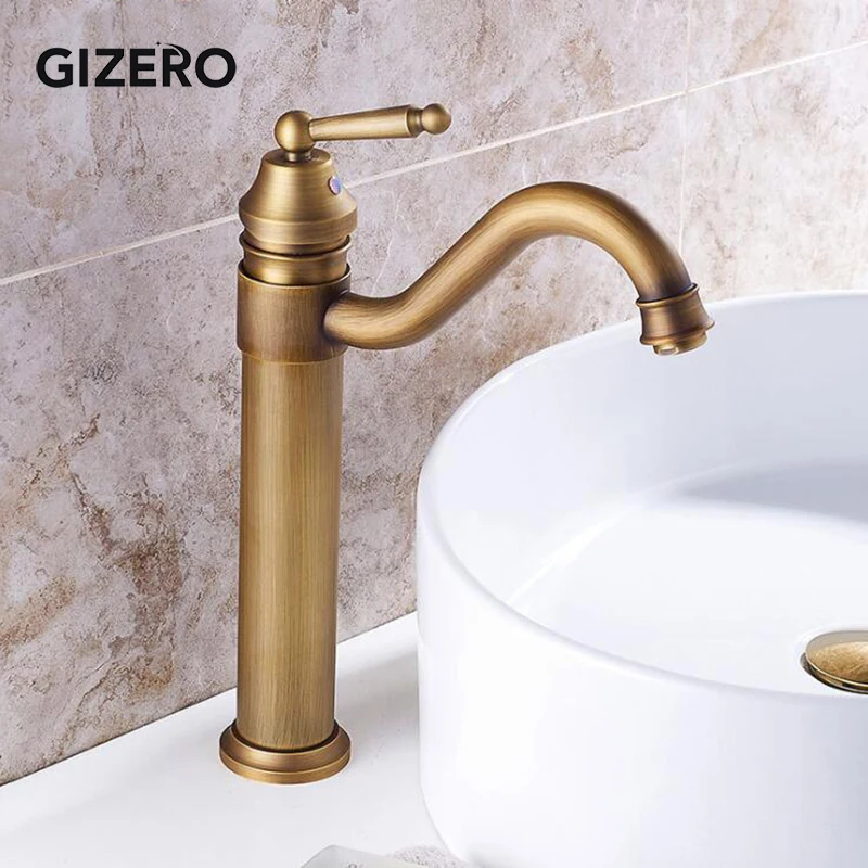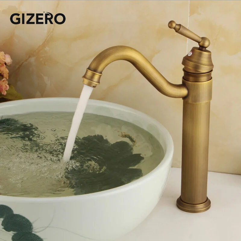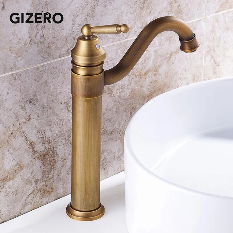 Best 13" Tall Basin Mixer Bathroom hot and cold Faucet Swivel Spout Antique Bronze Deck Mounted Vessel S